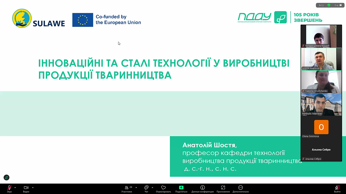 On 12 June 2025, as part of the Erasmus+ International Summer School ‘Sustainable Animal Production and Animal Welfare’, Anatoliy Shostya, Professor of the Department of Animal Production Technology at Poltava State Agrarian University, gave a lecture on ‘Innovative and sustainable technologies in animal production’.
