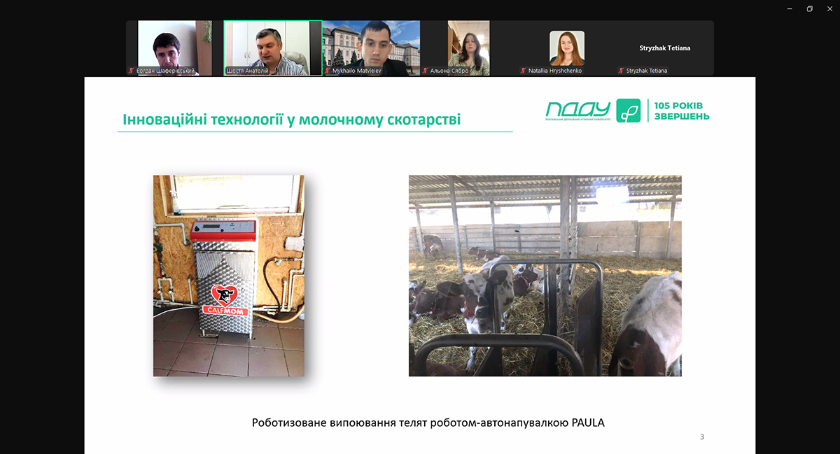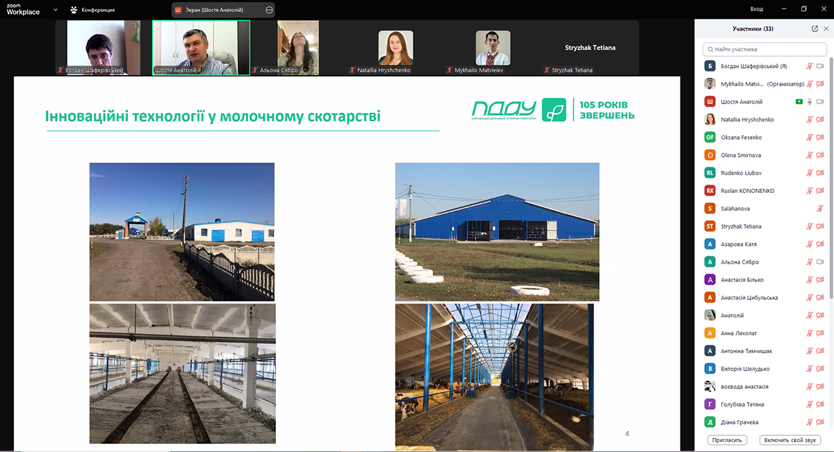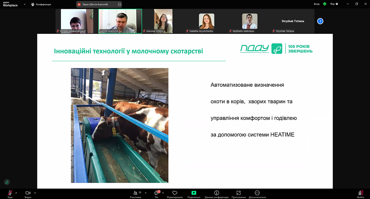 The lecture covered innovative and sustainable technologies in animal husbandry, which are increasingly determining the direction of the industry’s development, ensuring its competitiveness and compliance with environmental and social requirements. Sustainable development in animal husbandry is characterised by a balanced combination of economic efficiency, social responsibility and environmental safety. Sustainable practices include the use of energy-saving technologies, water reuse, waste utilisation with biogas production, optimisation of livestock structure and reduction of greenhouse gas emissions. In particular, the use of biogas plants on livestock farms makes it possible to utilise manure and manure effluents, reducing environmental pollution and at the same time obtaining an alternative source of energy.